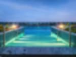 Nestled on the 17th floor, this apartment spans 54 m² / 581 sq. ft., catering to solo travelers, couples, and small families. It accommodates up to 4 adults and a child. The space includes a bedroom with an ensuite bathroom, a guest washroom without a shower, a living room with a sofa bed for two adults, a designated dining area, a fully equipped kitchen, and a balcony with pool views.