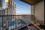 Nestled on the 17th floor, this apartment spans 54 m² / 581 sq. ft., catering to solo travelers, couples, and small families. It accommodates up to 4 adults and a child. The space includes a bedroom with an ensuite bathroom, a guest washroom without a shower, a living room with a sofa bed for two adults, a designated dining area, a fully equipped kitchen, and a balcony with pool views.